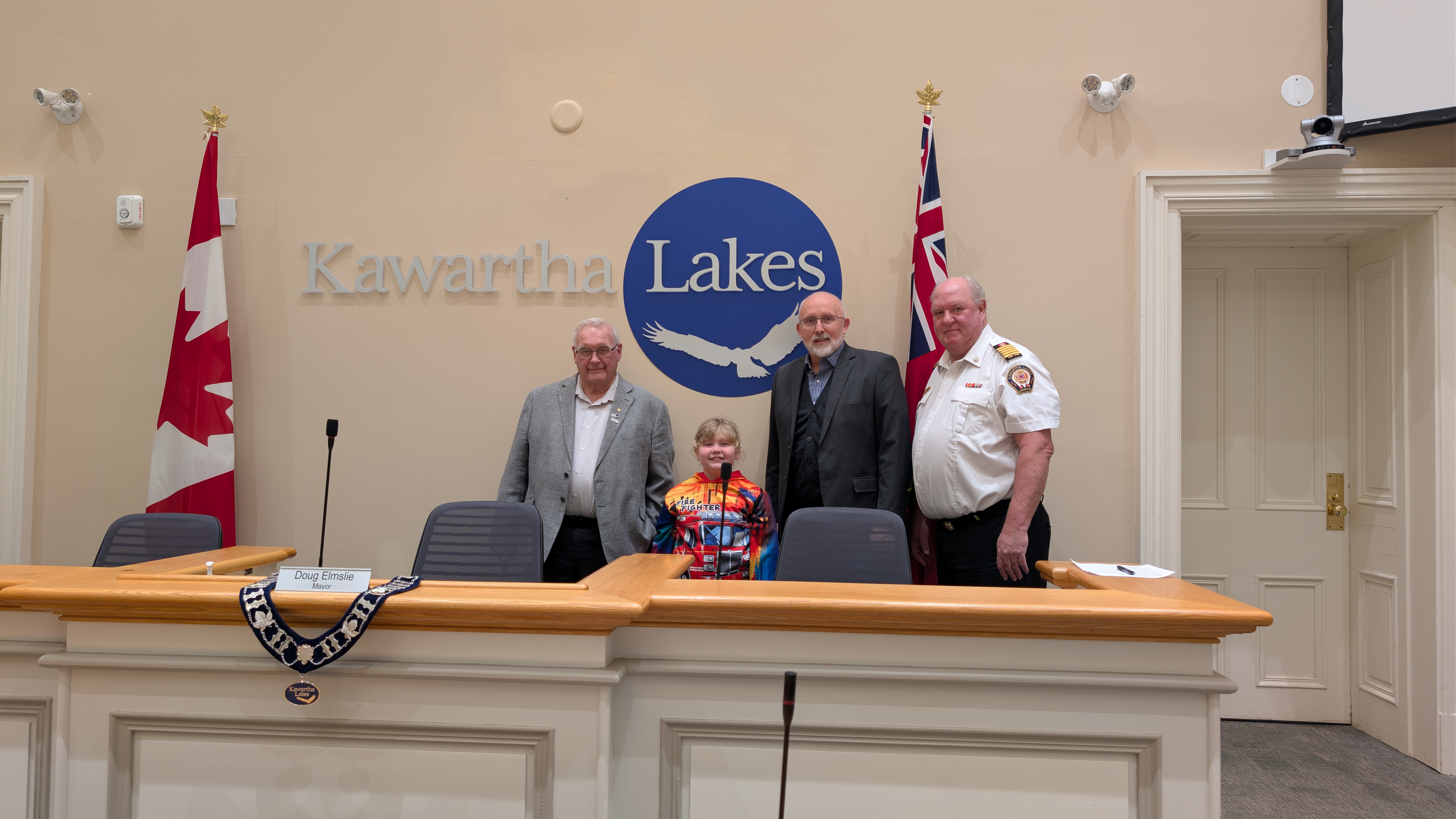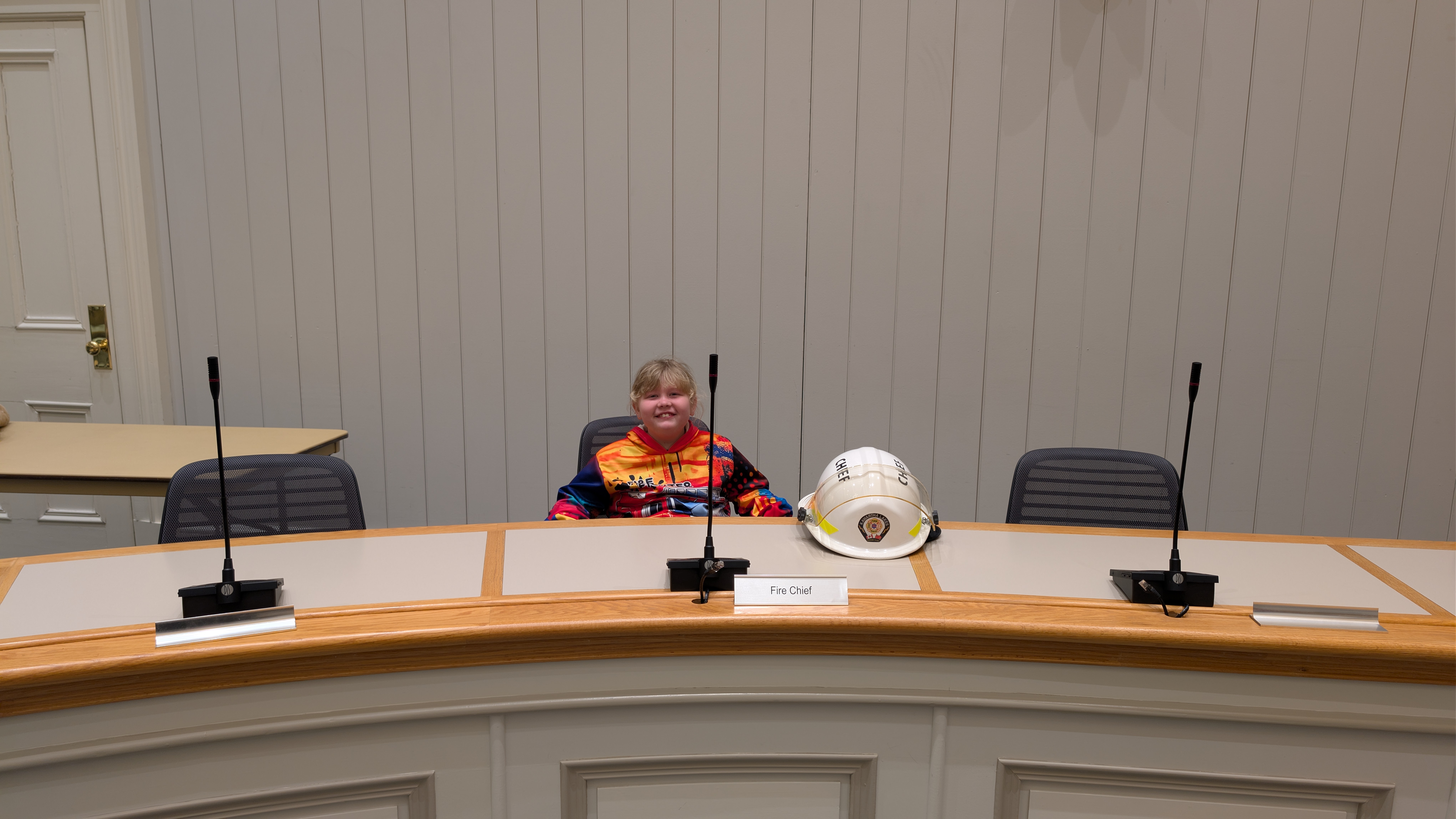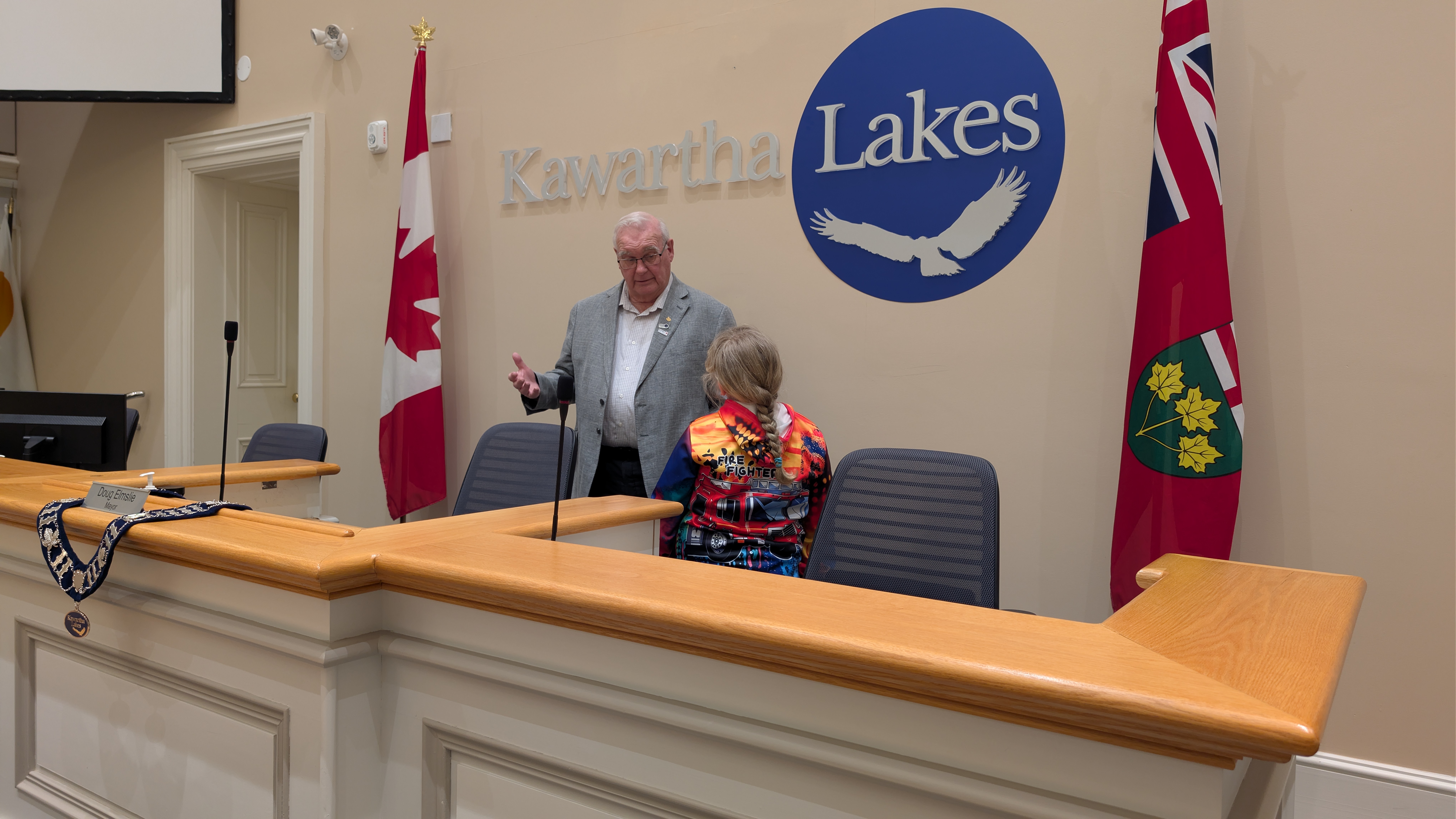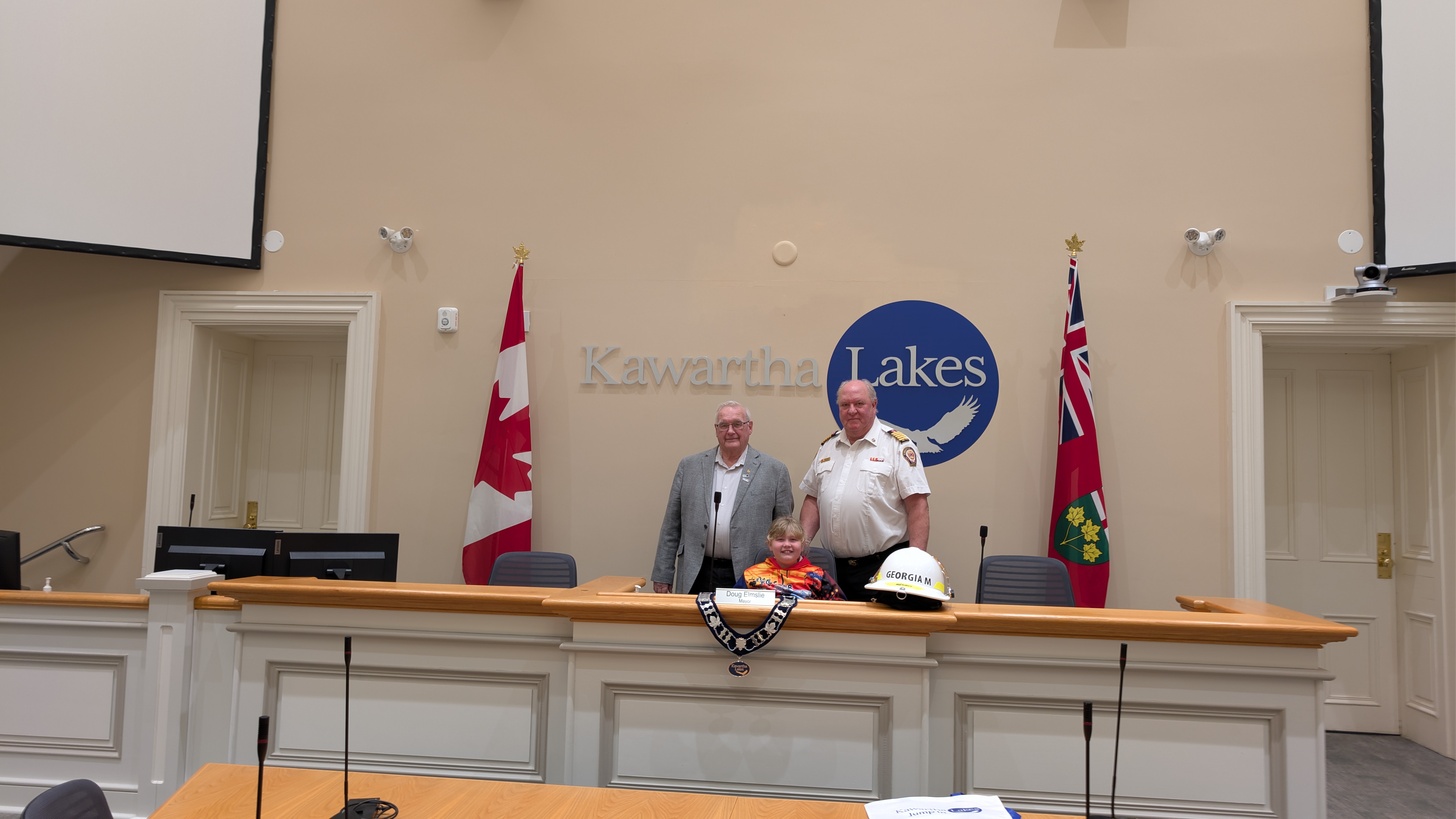 The day continued with a visit to Council Chambers, where Georgia met with Mayor Doug Elmslie and Chief Administrative Officer Ron Taylor for a photo opportunity and meet and greet. While seated in Fire Chief Terry Jones’ chair, Georgia made her first official request for two new fire trucks.