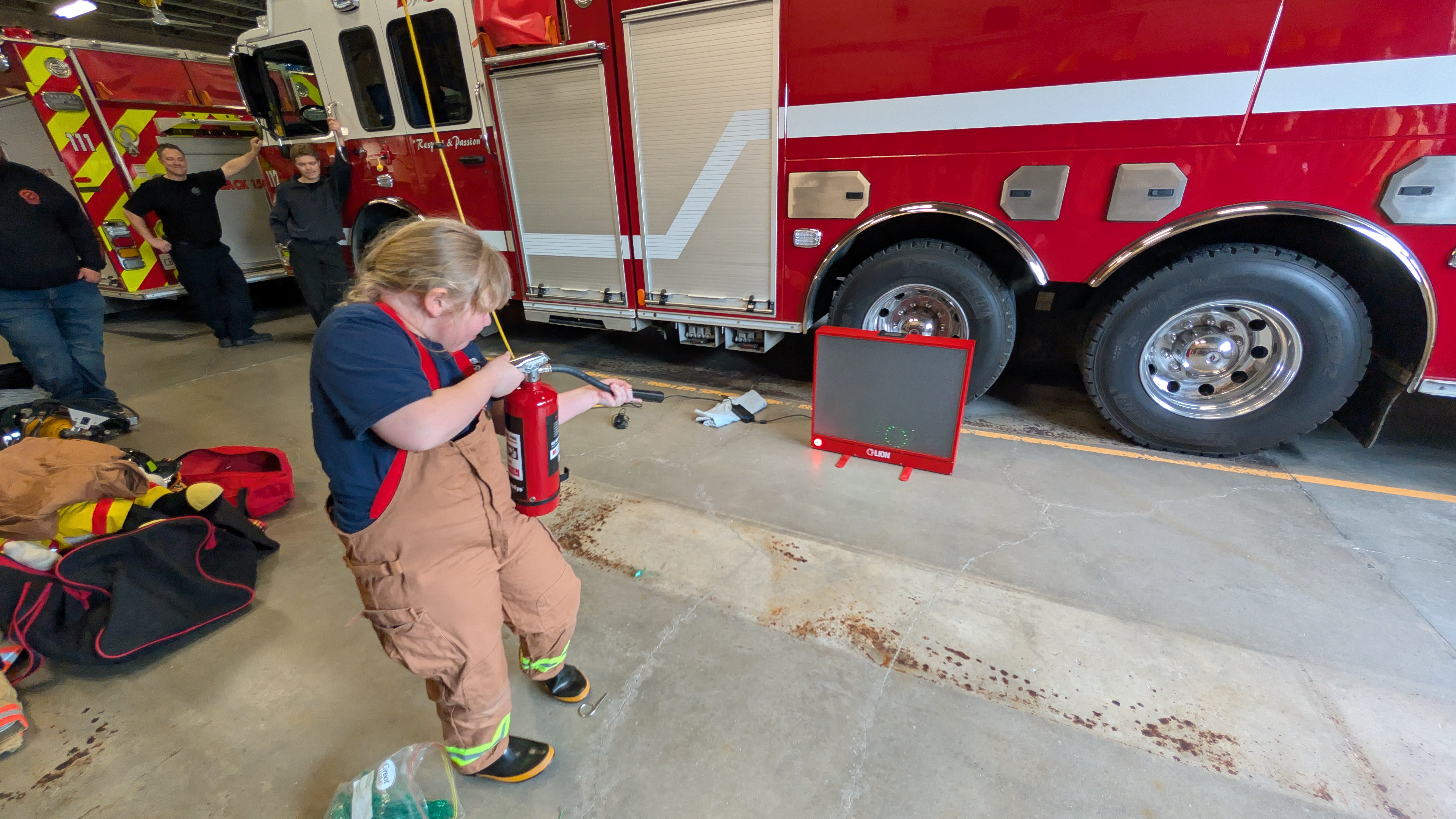 Upon arriving at Fire Service Headquarters, Georgia took part in the morning routine, including completing a radio check with dispatch and assisting with a full truck inspection to ensure all lights, tools, and equipment were functioning properly.